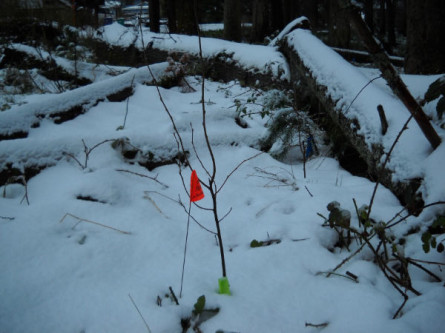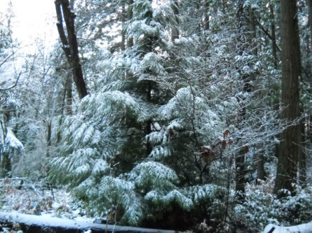 January Tree Planting Event—745 native trees planted in Woodlands east section, marking the 3rd year of FHNA’s 5 year reforestation program—Thank you to all volunteers who planted Oregon Ash, Paper Birch, Shore Pine, and Western Red Cedar on that cold wintery day! As we were digging the last few holes, the air temp grew steadily colder, then the snow started falling. Snow continued falling through that day…and the next… and the next. Here are some Woodland scenes after the snowfall.