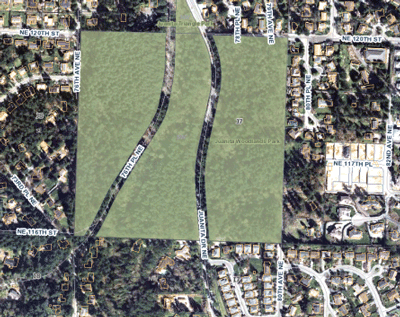 Juanita Woodlands is a 40 acre urban forest park in the King County Park system, located in the Finn Hill neighborhood of Kirkland, straddling  Juanita Drive N.E. and Holmes Point Drive N. E. immediately south of N.E. 120th Street (see map image to right).