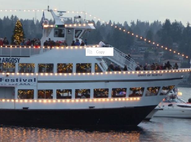 This year’s Xmas Boats came to O.O. Denny Park at sunset on Sunday. The Finn Hill Neighborhood (FHNA) gave them a huge welcome. Nearly 600 people cheered as a huge bonfire lit the night. Luminarias lit the way. The dry, mild weather added to the celebration. The carolers on the boats were easily heard and they had a great program of Xmas and Hanukah songs.