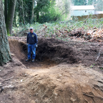 - Large hole cut into tree’s roots.