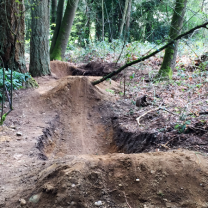 When new trails are forged in the woodlands and new bike jumps etc… It becomes very dangerous to the public. Please notice houses in the background of the pictures. The tree that has had its roots cut is now likely to fall on someone’s house.