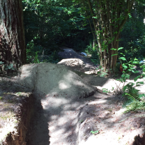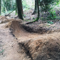 The lower set of photo’s were taken in the county right of way of an abandoned road and not the Woodlands. The person that decided to complain said that he could not use the trail because of the jumps. The trail was not there until the jumps were built. It was previously covered with blackberries and fallen trees. The tree mentioned in the article was dying as are many of the trees in the Woodlands. The roots were not cut but they were damaged when KC brought an excavator in to plow the ground smooth. Look and you will see. I and the boys who built the jumps participated in making the first trail from one end to the other. They also participated in evasive species removal and tree planting. When you walk these trails understand that they were build by neighbors committing misdemeanors. Enjoy the woods I helped pay for.