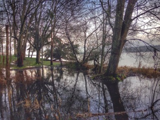 A history of local landslides here on Finn Hill prompted King County to enact the special Holmes Point Overlay ordinance in the 1990s, restricting development, to reduce erosion, after many slides had closed roads in the past. This winter, again, as has often happened, Holmes Point Drive was closed, due to downed trees and an unstable cliffside. A landslide, imperiling homes on Goat Hill in Juanita and its steep access road, closed Juanita Drive in 2010. That year, too, a mudslide broke out behind a home for sale on Holmes Point Drive.